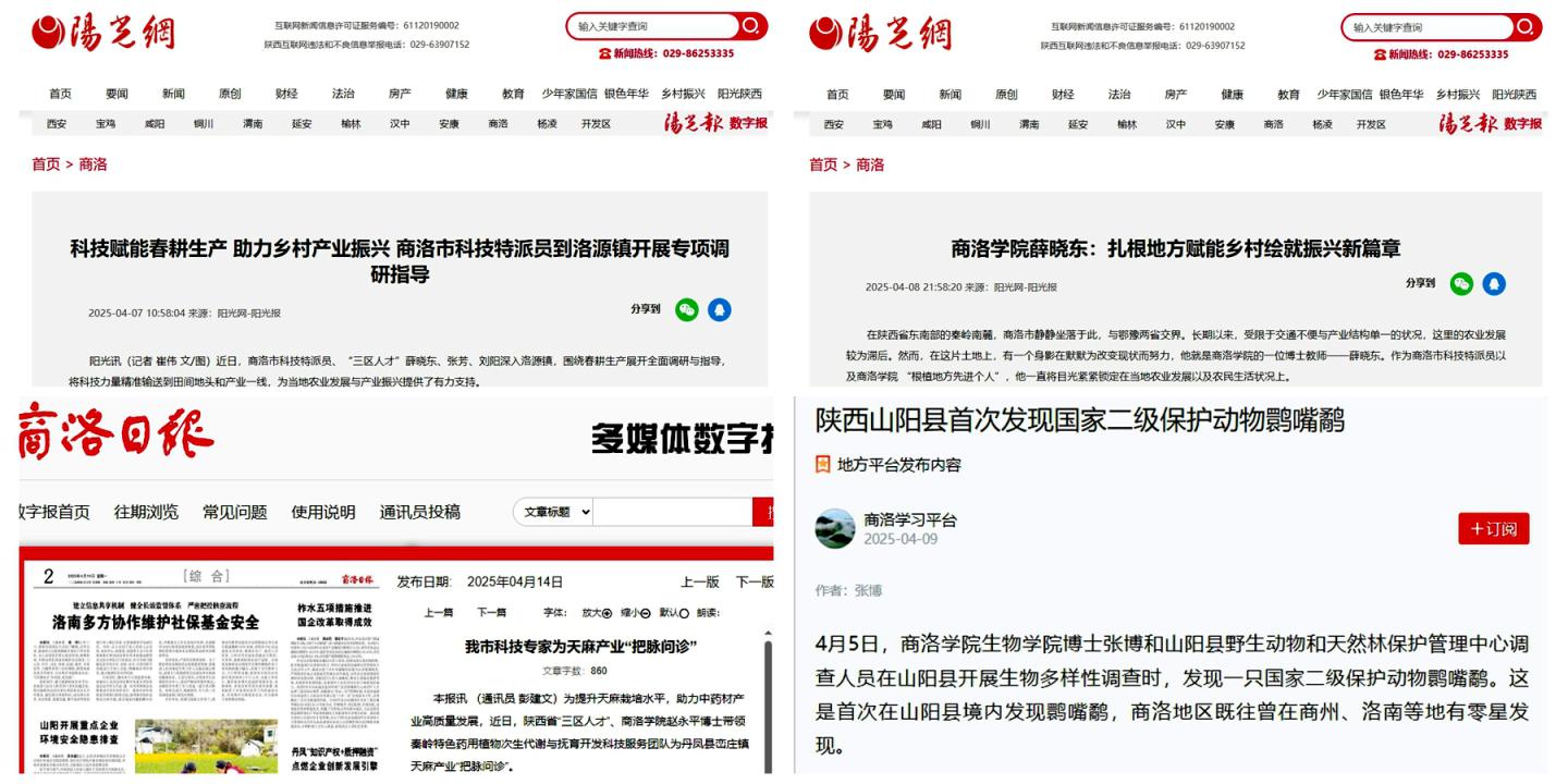 近日,学习强国学习平台、阳光报、商洛日报等社会各界媒体纷纷报道永利官网教师服务秦岭生态环境保护、助力乡村振兴和地方经济发展的典型事迹。4月5日,学习强国刊发《陕西山阳县首次发现国家二级保护动物鹮嘴鹬》一文,专题报道永利官网动物学博士张博在山阳县关于国家二级保护动物鹮嘴鹬的重大发现,及其助力秦岭珍稀野生动物多样性研究和生态环境保护的工作纪实。4月7日、8日,《阳光报》分别刊发消息《科技赋能春耕生产助力乡村产业...