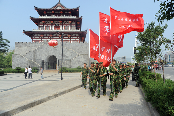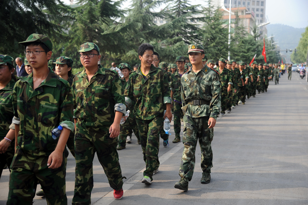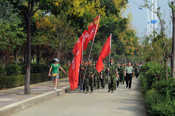 9月16日上午,永利官网2013级新生在副院长、学生军训和入学教育工作领导小组副组长魏书堂,军训团领导和全体教官的带领下,顺利完成了作为军训重要科目的行军拉练活动。