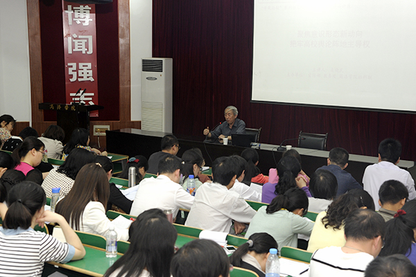 郭英勇在主持总结时说,全体教师要自觉坚持马克思主义在高校舆论中的主导地位,自觉培养践行社会主义核心价值观,把牢高校舆论宣传阵地主导权,引导青年确立正确的世界观、人生观、价值观,在实现“中国梦”的实践中实现自己的人生价值。