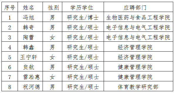 yl23455永利官网2020年第二批招聘教师名单(8人)