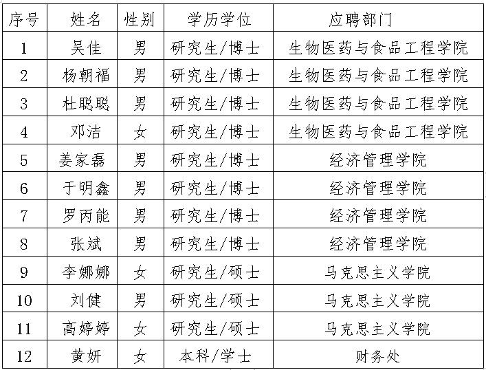 yl23455永利官网2020年第四批拟招聘人员名单(12人)