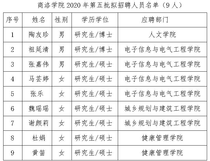 附件:yl23455永利官网2020年第五批拟招聘人员名单