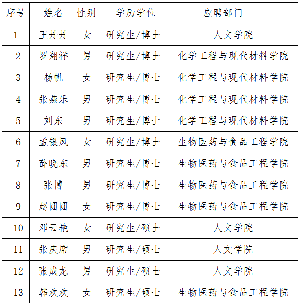 yl23455永利官网2020年第六批拟招聘人员名单(13人)