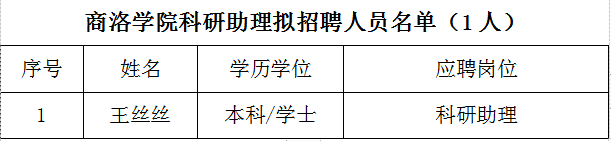 根据《关于公开招聘科研助理的通知》,经过资格审查、专家面试等环节考察,根据项目具体需要,拟聘用王丝丝同志为永利官网非事业编制聘用人员,现予以公示。如有异议,请于2020年12月12日前向科技处、人事处反映。