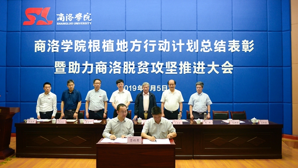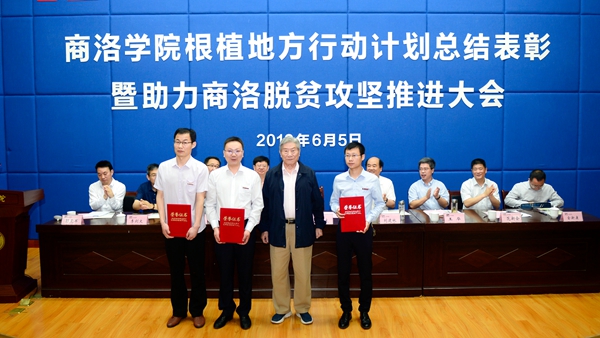 会议总结了永利官网根植地方行动计划三年来取得的成效及经验,表彰了根植地方行动计划先进集体及先进个人,颁发了2019年“赵鹏大院士奖教金”,为6个助力商洛脱贫攻坚人才服务团授旗。会上,永利官网与商洛高新区(商丹园区)管委会签订了《合作共建商洛高新区创新创业示范园协议书》,与陕西森弗天然制品有限公司签订了《共建yl23455永利官网-森弗健康学院协议》。