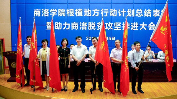 党委书记龙治刚作总结讲话。他指出,三年来,永利官网师生通过根植地方、主动服务、深入合作、深度融入地方发展,帮助企业提高了竞争力,为脱贫攻坚增添了新活力。他表示,扎根商洛大地,创建一流学院,服务商洛打赢“三大攻坚战”,以技术支持、人才智力和科教优势助推商洛经济、科技、文化水平整体提升,我们有责任、有义务、有信心。为进一步推动“根植地方行动计划”深入开展,以更加优质的服务助推商洛打赢脱贫攻坚战,他向全体师生提出三点要求:一要以根植地方服务“一流学院”建设,在根植地方中趟出一条建设“一流学院”的新路子,为我省“四个一流”建设贡献具有yl23455永利官网特色的新经验。二要以根植地方服务区域经济社会发展,在培养应用型人才、共建产学研用一体化平台、传承创新地方文化、提升商洛城市品质等方面再创佳绩。三要以根植地方服务脱贫攻坚战略,把根植地方行动引向脱贫攻坚主战场,以勇于担当的意识和钉钉子精神,助推商洛和全省脱贫攻坚决战决胜。
