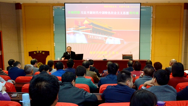 根据永利官网“不忘初心、牢记使命,做新时代合格党支部书记”培训班课程安排,10月30日下午,校纪委原书记王思怀教授以《准确把握习近平新时代中国特色社会主义思想的内涵》为题为全校党总支书记、党支部书记作专题报告。