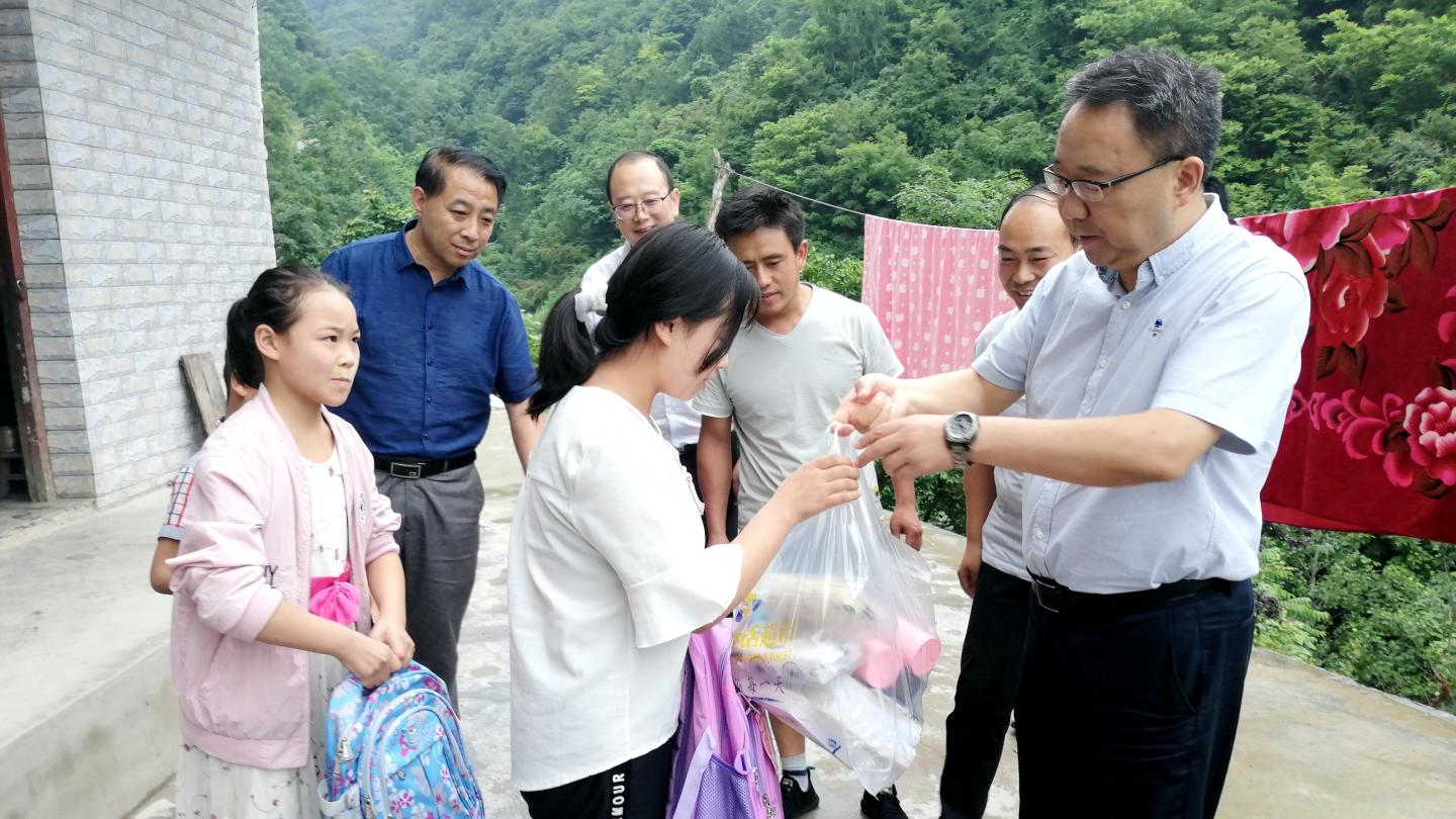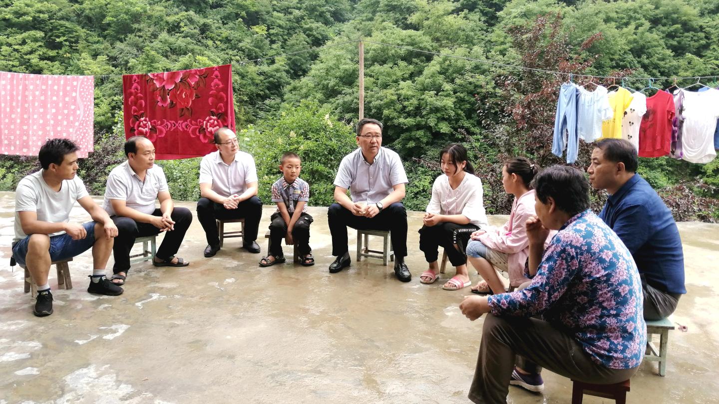 7月16日,党委书记龙治刚、副校长王新军赴永利官网包扶村——镇安县回龙镇和坪村走访慰问贫困户,党委委员、组织部部长郭瑾陪同慰问。