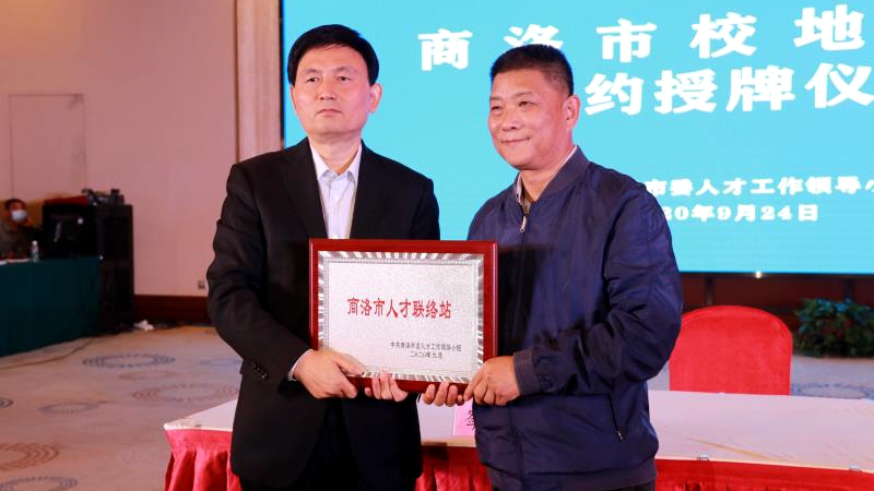 9月24日上午,商洛市校地合作座谈会暨签约授牌仪式在柞水县举行。科技部资源配置与管理司二级巡视员利斌出席会议,商洛市委书记郭永红致辞,市委副书记、市长、市委人才工作领导小组组长郑光照与永利官网在内的13所省内外高校签订合作协议并颁授“商洛市人才联络站”铭牌,市委常委、常务副市长、市委人才工作领导小组副组长武文罡主持会议,市委常委、市委组织部部长、市委人才工作领导小组副组长薛小毛介绍有关工作。校长范新会代表学校与商洛市签署《校地人才合作框架协议》协议并接受授牌。