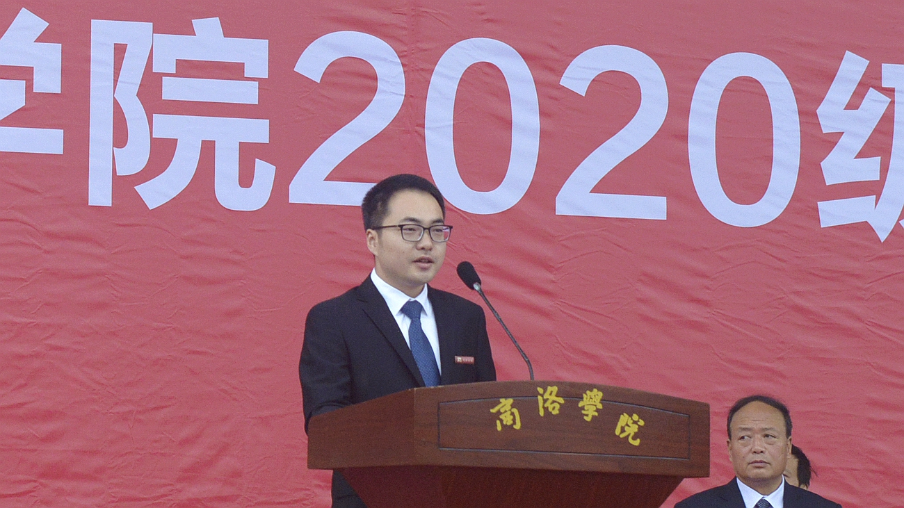 生物学院王洋博士作为教师代表发言,欢迎新生们来到大学这所前沿科技、人文、社会思想荟萃的殿堂,鼓励他们做敢于挑战的青春筑梦者和充实快乐的青春圆梦者,将个人的进步融入到与实现中华民族伟大复兴的生动实践之中,用奋斗书写精彩的人生华章。