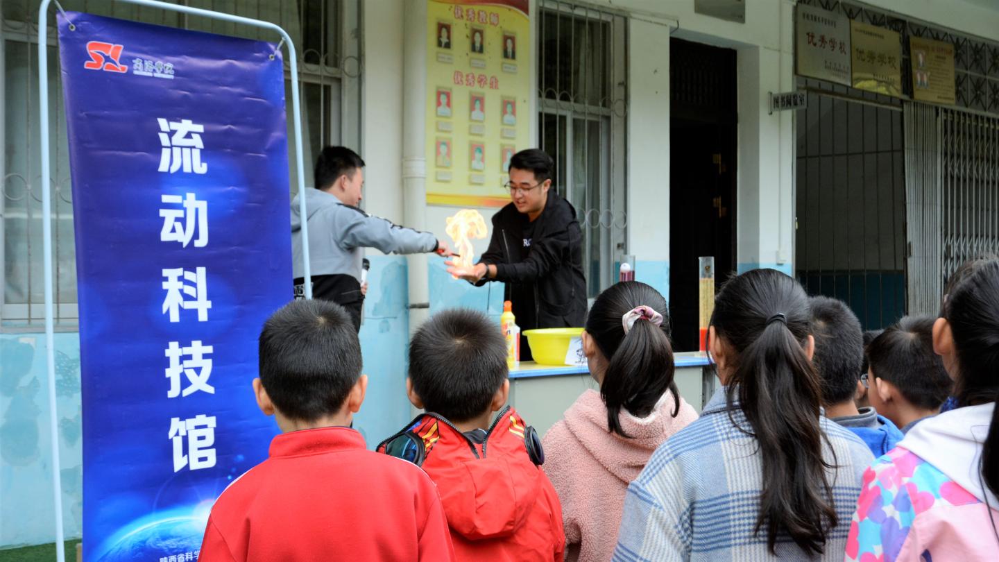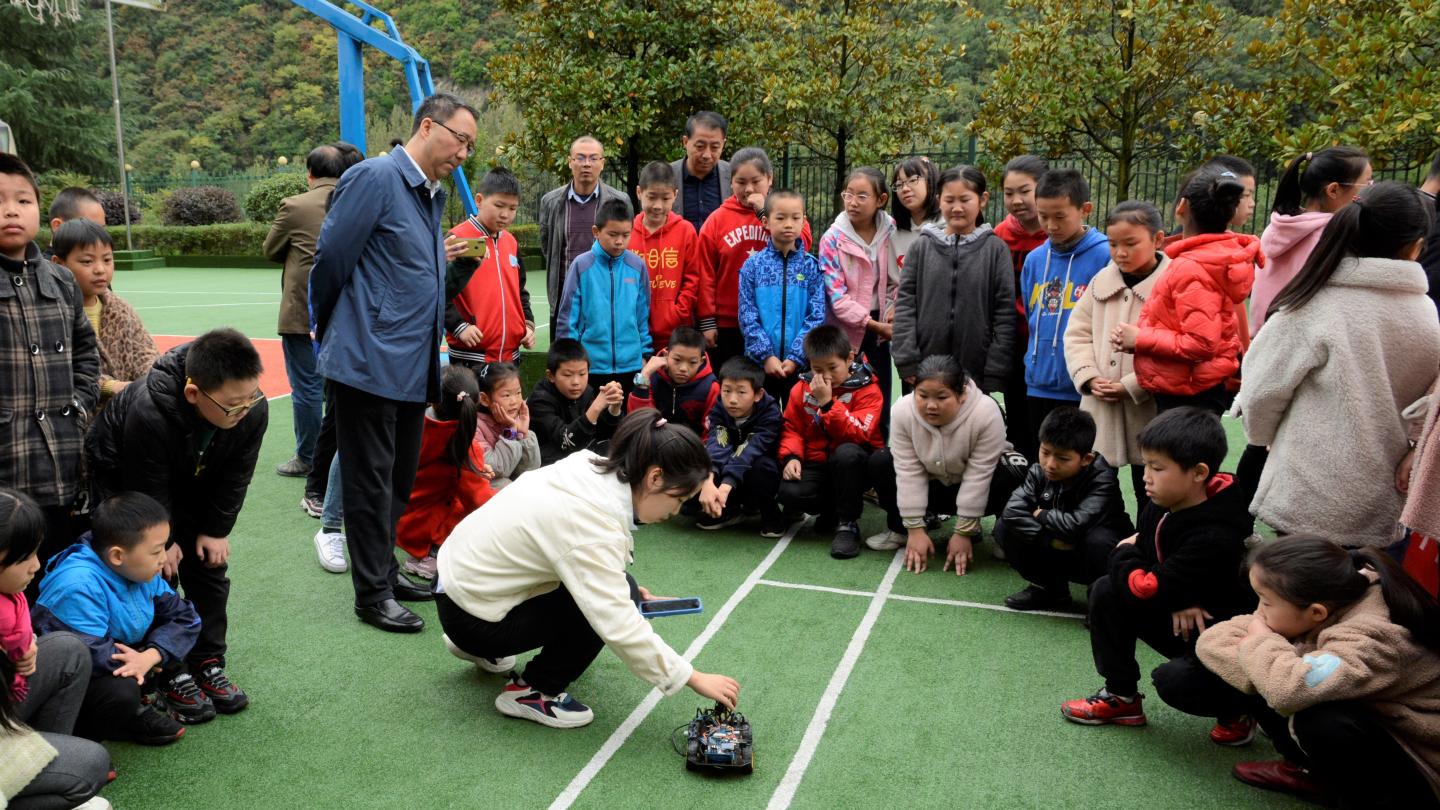 永利官网“乡村流动科技馆”的科普使者们把各式各样新奇好玩的科技作品和航模飞行器带到和坪村小学进行展览,以精彩的情景剧和现场讲解,串联展示了趣味密度实验(陕西省科学实验大赛二等奖获奖作品)、自制汽水实验、美丽化学试验和废物利用—音箱、昆虫“琥珀”标本制作等科普试验,手把手教小朋友们遥控小坦克、小汽车,带着他们一起放飞航模飞行器,让他们在互动中领略科学的神奇魅力,引导他们张开理想的翅膀,在更加广阔的天地勇敢追梦。
