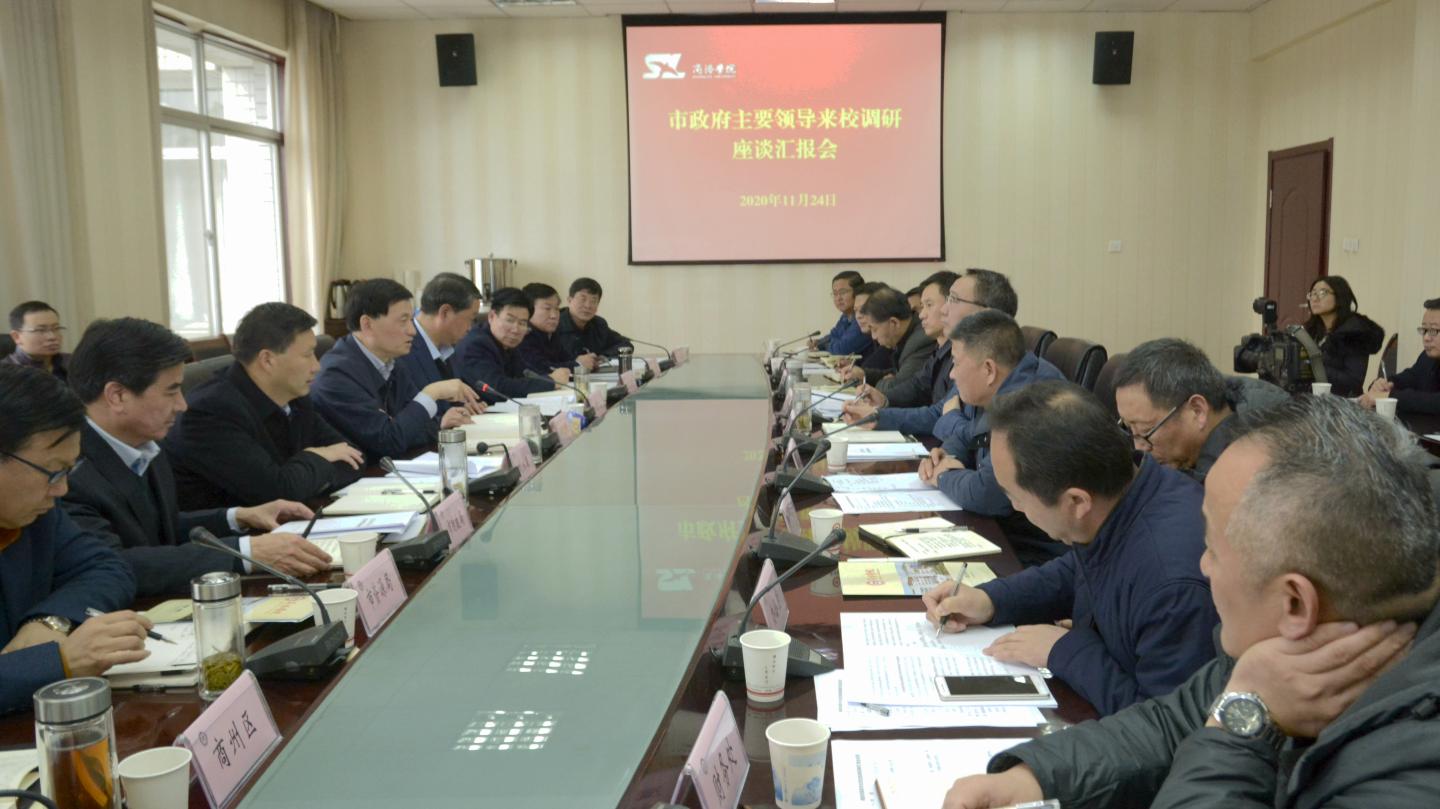 11月24日,市委副书记、市长郑光照带领商州区政府、商洛高新区(商丹园区)管委会和市级相关部门负责同志,来永利官网调研学校建设发展情况,召开座谈汇报会研究解决困难问题。副市长周秀成、市政府秘书长刘永康一同调研并参加调研座谈。校党委书记龙治刚主持座谈会,校党委副书记、校长范新会汇报工作。