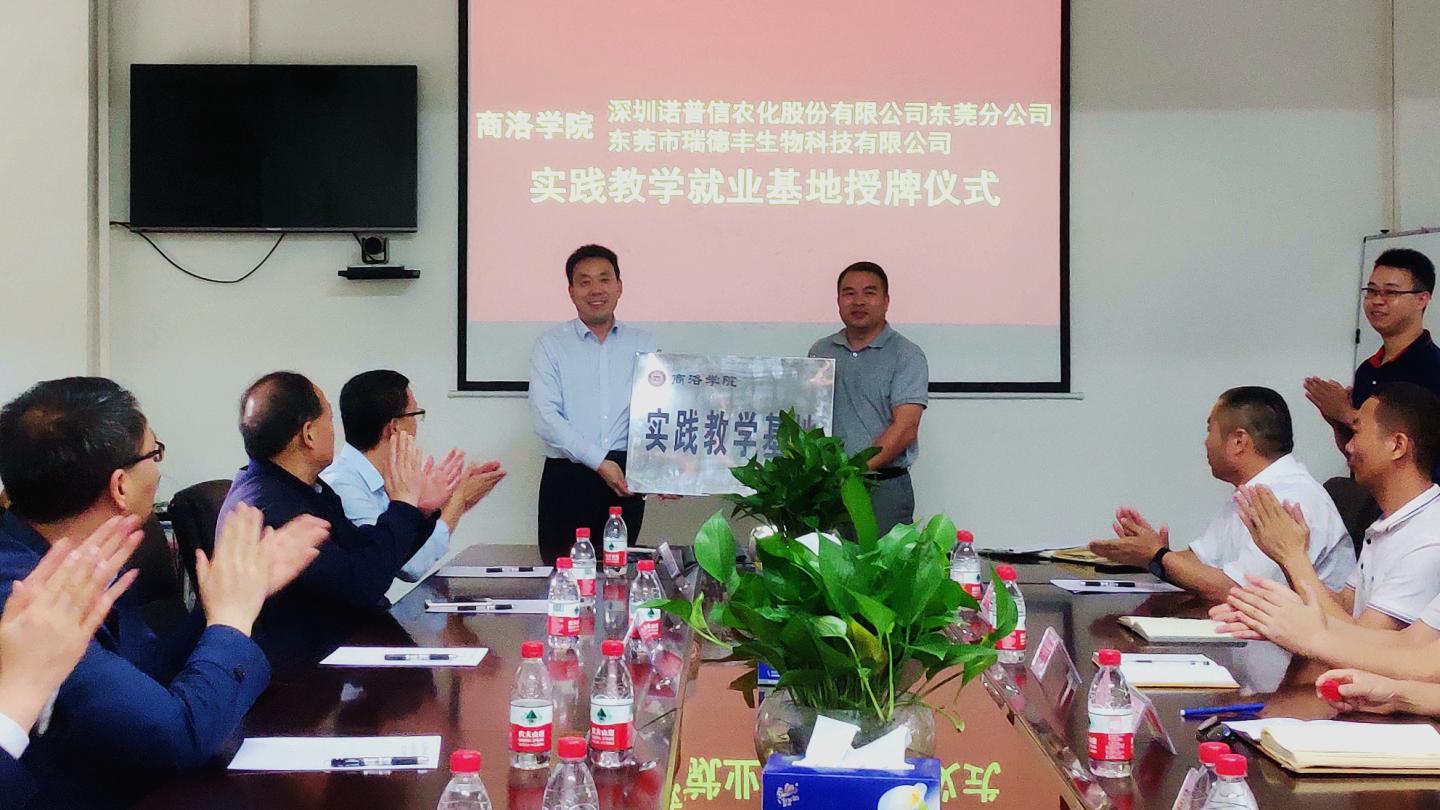 深圳诺普信农化股份有限公司东莞分公司、东莞市瑞德丰生物科技有限公司与永利官网已建立多年合作关系,今年生物学院、化材学院有3个专业、25名毕业班学生在此实习。龙治刚一行与两家企业代表及永利官网实习学生代表进行了座谈交流,彭虎军代表学校为两家合作企业教学实践基地授牌。龙治刚在座谈中指出,诺普信集团作为服务三农的农业龙头企业,与永利官网有着良好的合作基础。希望校企双方进一步健全合作机制,在教学实习、就业实习的基础上,探索打造“订单培养”模式、实施“人才定制班”、建立“产业学院”,推进产学研用一体化纵深发展,促进更多学生在南粤大地上实现自己的人生理想。深圳诺普信农化股份有限公司东莞分公司总经理田先平表示,将全力支持学校发展,为学生实习就业提供良好平台。