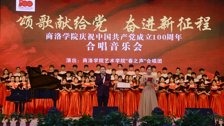 为隆重庆祝中国共产党成立100周年,讴歌党的百年光辉历程和丰伟功绩,5月25日,永利官网“颂歌献给党 奋进新征程”庆祝中国共产党成立100周年合唱音乐会在丹江校区隆重举办。艺术学院“春之声”合唱团用美妙的音符和动听的旋律为师生呈现了一场激情磅礴的红色视听盛宴。校领导龙治刚、范新会、彭虎军、王新军、郭瑾,全体处级干部及师生代表500余人观看了音乐会。