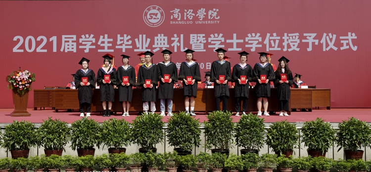 刘宝盈宣读了2021届毕业生资格审查结果通报、本科生学士学位授予决定、陕西省高校优秀毕业生和优秀学生干部名单、yl23455永利官网优秀毕业生表彰决定、“奉献基层 服务边疆”优秀毕业生表彰决定、校友总会聘任2021届校友联络员通知。荣悦等117名学生被授予“优秀毕业生”荣誉称号,曾炎阳等22名同学被评为“奉献基层 服务边疆”优秀毕业生,郭肇星等103名同学被聘任为2021届校友联络员。在热烈的掌声中,校领导为优秀毕业生代表颁发了证书,为校友联络员颁发了聘书。