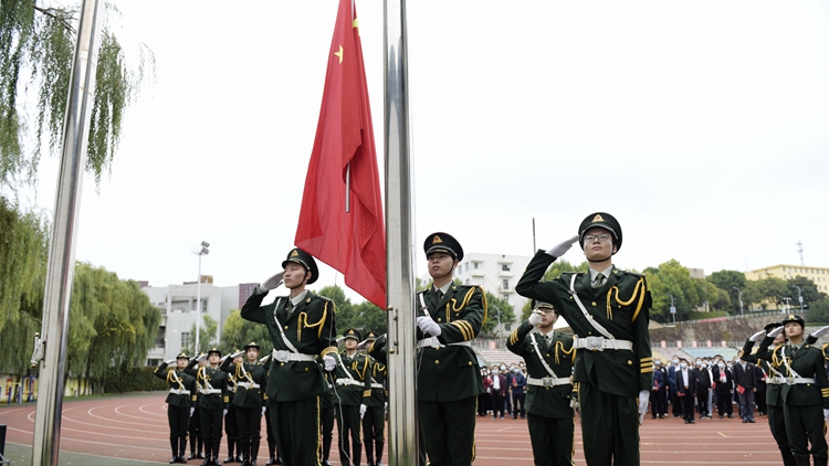 旗帜飘扬引领方向,国歌响亮催人奋进。为庆祝中华人民共和国成立72周年,9月30日上午,永利官网在北新街校区体育场隆重举行“听党话跟党走做新时代合格新青年”主题升国旗仪式。党委书记张志昌、校长范新会,党委副书记彭虎军、刘勇,副校长刘宝盈、王新军,党委委员李超、杨存典出席升国旗仪式。各职能部门负责人、各二级院(部)党政主要负责人、经管学院全体师生参加升国旗活动。