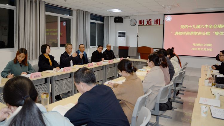 为深入学习党的十九届六中全会精神,推进全会精神进教材进课堂进头脑,11月26日下午,永利官网召开党的十九届六中全会精神“三进”集体备课会。校党委书记张志昌、副校长刘宝盈出席会议,教务处、中国特色社会主义理论体系研究中心负责人,马克思主义学院相关负责人及全体教师参加会议。
