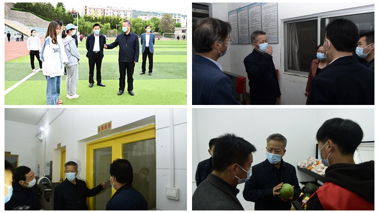 在党委办公室·院长办公室、学生处、保卫处、后勤保障处相关负责人的陪同下,张志昌一行深入体育场、学生宿舍、食堂、物资仓库、校园超市、水果店、打印店等处,对在校生假期生活、宿舍管理、食堂饭菜质量、生活物资储备、超市物品价格、水果店水果种类及价格等情况进行了详细检查,并与学生亲切交谈,了解同学们假期学习生活情况。