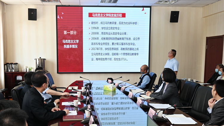 根据陕西省委宣传部、省委教育工委相关要求,永利官网积极申报建设陕西省第二批重点马克思主义学院培育单位。5月19日上午,在省委宣传部二级巡视员可小闹的带领下,由西安交通大学马克思主义学院院长燕连福任组长,长安大学马克思主义学院院长陈怀平、西安理工大学马克思主义学院院长梁严冰为成员的专家组来到永利官网,实地检查评估重点马克思主义学院培育单位建设情况。校党委书记张志昌出席评审汇报会并致辞。党委副书记彭虎军主持汇报会。