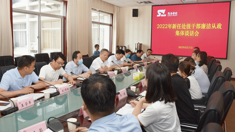 6月17日下午,永利官网召开新任处级干部廉洁从政集体谈话会,对新任处级干部履职尽责、廉洁从政提出要求。校党委书记张志昌出席会议并讲话,党委副书记彭虎军主持会议并作任前廉政谈话。党委委员、组织部部长张向东,纪委副书记田小莉和新任处级干部参加会议。
