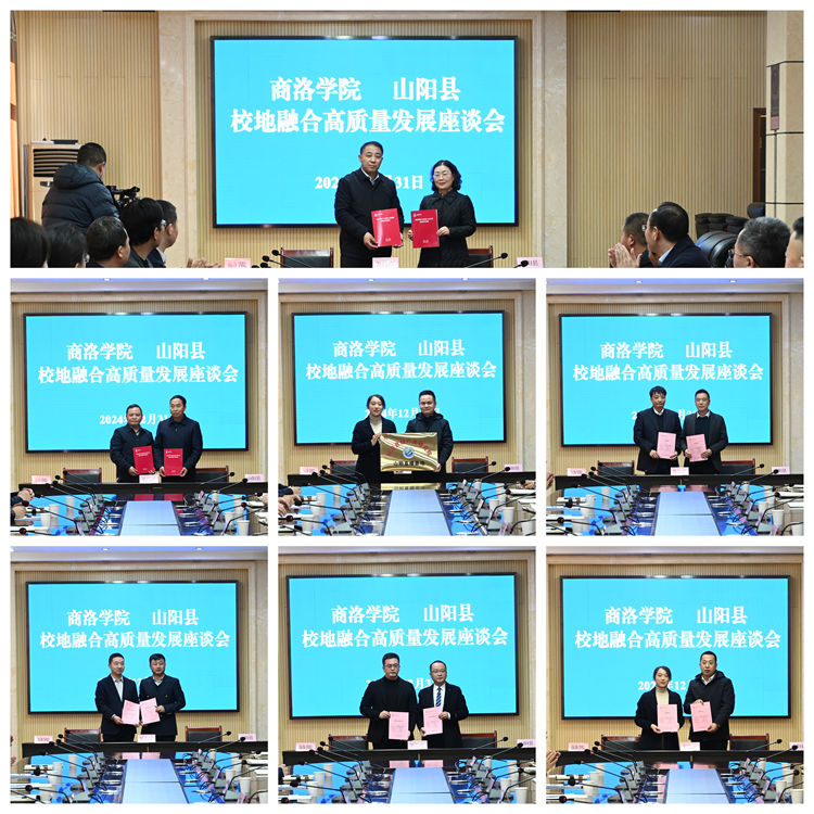 为进一步深化政产学研深度融合、政校企地合作发展,实现科学研究和服务地方水平持续快速提升,12月31日,yl23455永利官网与山阳县共同举办校地融合高质量发展签约仪式。yl23455永利官网校长权雅宁、副校长王新军,山阳县县长李凌云,副县长陈宏波,县委常委、统战部部长乐席波出席签约仪式。山阳县县委常委、组织部部长伍淑军主持签约仪式。