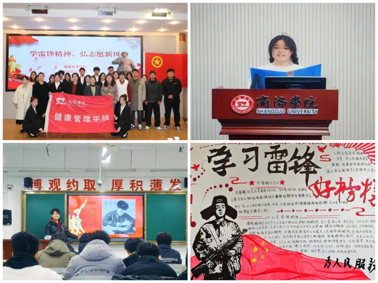 艺术传承扬精神,榜样引领树新风。健康管理学院承办“学雷锋精神,弘志愿新风”3月份示范主题团日活动,通过视频学习、诗歌朗诵和志愿服务故事宣讲等形式同团员青年分享雷锋精神。化材学院举办“诵雷锋精神,铸青春华章”主题朗诵比赛,以声传情、以诗言志,用激昂的诵读致敬榜样,展现新时代青年的责任担当。艺术学院发起“绘雷锋画像”主题活动,用画笔诠释奉献之美,将雷锋精神与艺术文化深度融合。