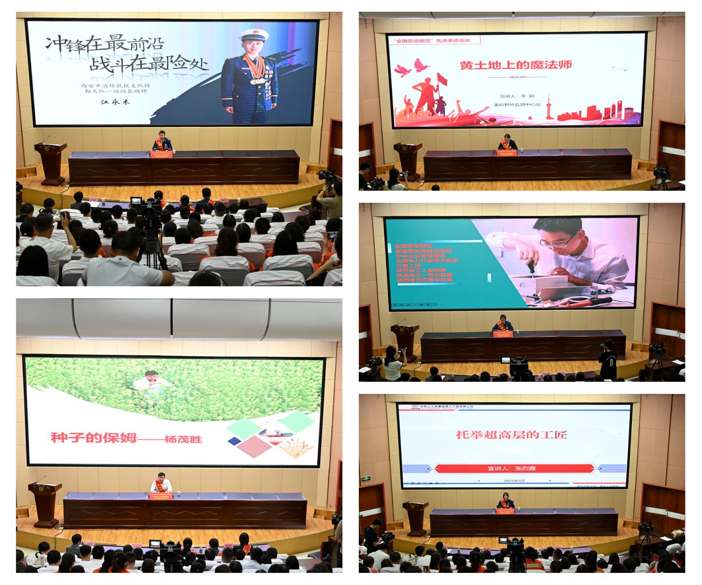 江永木、杨茂胜、李娟、豆河伟、张烈霞5位全国劳模与先进工作者用质朴的语言、真挚的情感,以亲身经历讲述了他们的奋斗历程和感人故事,分享了学习习近平总书记重要讲话精神的深刻感悟,诠释了“爱岗敬业、争创一流,艰苦奋斗、勇于创新,淡泊名利、甘于奉献”的劳模精神。