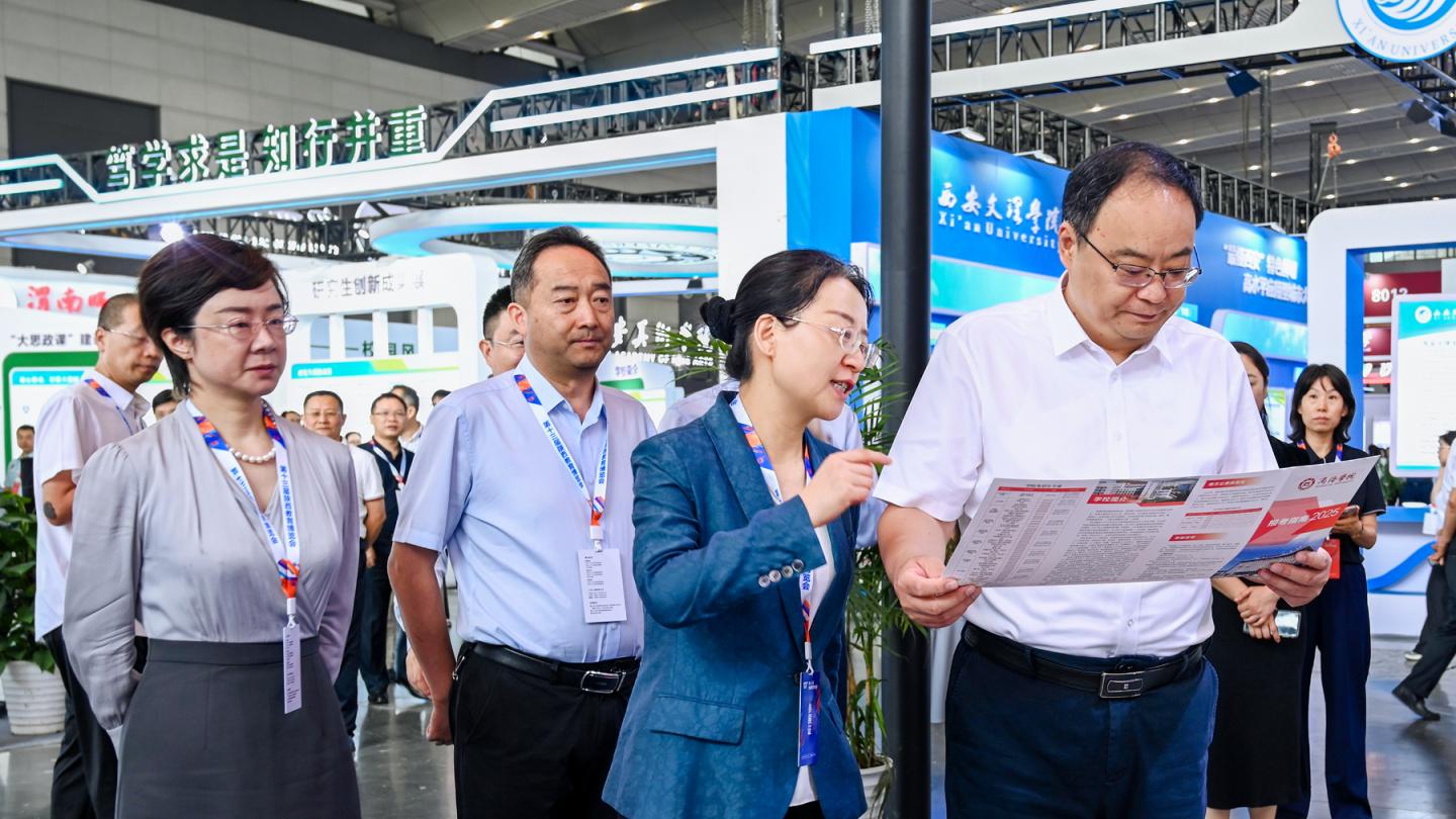 陕西省委教育工委书记、陕西省教育厅厅长王树声莅临永利官网展位参观指导,详细了解永利官网近年来聚焦人工智能技术创新、秦岭生态环境保护、生物资源开发利用、食品加工产业转化等方面的科研成果。