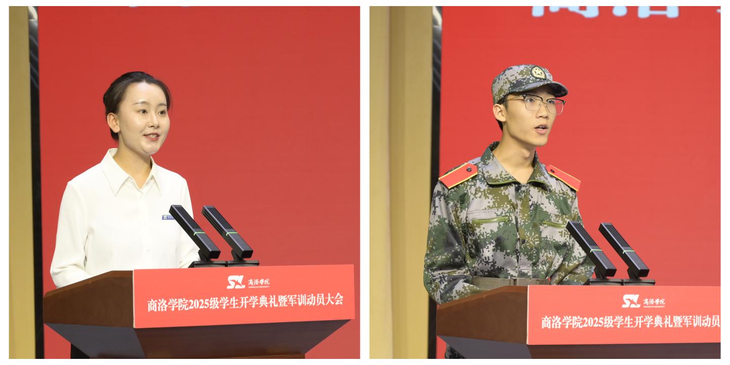 电信学院人工智能专业毛艺帧和数计学院网络工程专业杨启辰分别代表在校生和2025级新生发言。