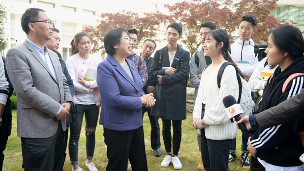 ——团长深度解读,实现在职教师全覆盖。11月13日至14日,王思怀分别为全校机关、教学院部教职员工作了题为《十九大的新亮点》的宣讲报告。他围绕10个关键词“新时代、新矛盾、新使命、新方略、新目标、新思想、新提法、新领袖、新背景、新未来”,对党的十九大报告进行了深入解读,深刻阐述了中国共产党人的“初心”与“使命”,并详细讲述了十九大确定的发展新方略以及在全面建成小康社会基础上实现建成社会主义现代化强国的新目标。鼓励全校教师砥砺奋进,为学校和国家发展贡献力量。
