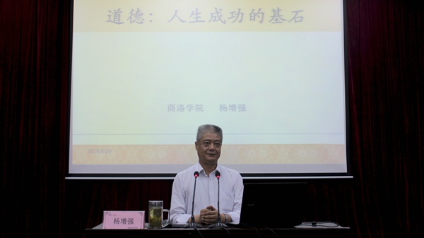 本期道德讲堂由唱道德歌曲、诵道德经典、学道德模范、听道德报告四个环节组成。活动在悠扬的《公民道德歌》中拉开帷幕,随后,在健康管理学院教师李梦姣的带领下,社会1801班全体学生诵读了《弟子规·信》中的片段,深情诠释了道德经典的魅力,赢得了阵阵掌声。接着,现场人员共同观看了陕西省第五届道德模范、孝老爱亲类“中国好人”唐伟丽的感人事迹短片。活动还邀请永利官网图书馆馆长杨增强教授以“道德:人生成功的基石”为题作了专题报告,报告指出,当代大学生应牢固树立社会主义核心价值观,坚持诚实守信的人生信条,把诚信融入到学习生活的方方面面。
