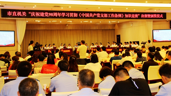 由市委机关工委举办的市直机关“庆祝建党98周年学习贯彻《中国共产党支部工作条例(试行)》知识竞赛于6月21日在商洛市行政中心举办。永利官网代表队在竞赛中取得了团体二等奖、1个最佳选手奖、2个优秀选手奖的佳绩。