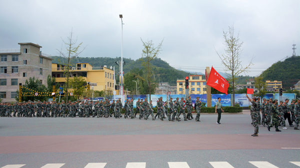上午8时整,全体参训新生按照10个连编制在学校体育场整齐列队, 随后,在各连旗手的引领下,同学们意气风发,迈着坚定有力的步伐,向目的地进发。走出北新街校区大门后,军训拉练队伍沿街东进,到G40高速引线转而向南,跨过丹江大桥,沿比亚迪大道前行,9点半左右,拉练队伍到达目的地永利官网丹江校区,原地稍作休息,然后原路返回,拉练总行程约11公里。