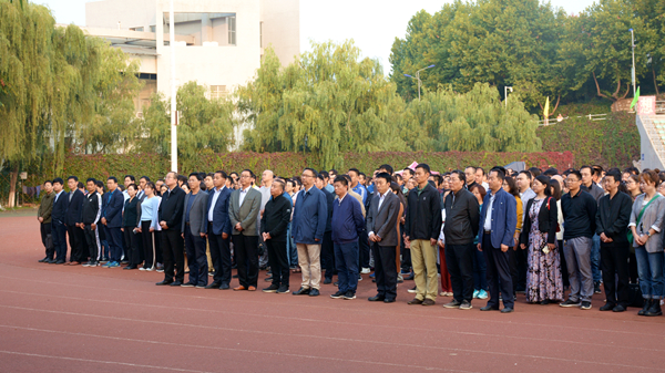 为加强对师生的爱国主义教育,9月30日,永利官网在体育场举行“庆祝新中国成立70周年”主题升国旗仪式。党委书记龙治刚、党委副书记、校长范新会,纪委书记王思怀,党委副书记彭虎军,副校长刘宝盈、刘勇,党委委员王新军、李超、杨存典、张向东、郭瑾,全校教职工、人文学院全体学生共计2000余人参加活动。
