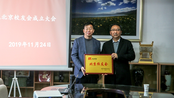 彭虎军为北京校友会受聘人员颁发了聘书。张向东宣读了学校关于成立北京校友会的批复和聘任决定。