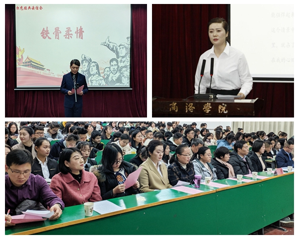 为深入学习贯彻习近平新时代中国特色社会主义思想和党的十九届四中全会精神,将“不忘初心、牢记使命”主题教育核心内容在师生中入心、入脑,12月5日,马克思主义学院党总支举办了“不忘初心、牢记使命”红色家书诵读会。宣传部相关负责同志、马克思主义学院教师党员和全体在校生参加了活动。