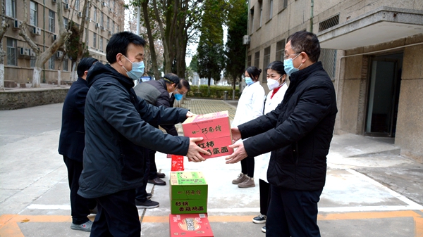 连日来,永利官网教职工上下一心、坚守阵地,落实落细各项防控措施,全力以赴做好疫情防控工作,取得了良好的工作成效和社会示范效应。为此,陕西省教科文卫体工会还专门给永利官网疫情防控工作拨付了补助金。2月20日,校党委副书记彭虎军、副校长王新军带着省教科文卫体工会的关心和支持,带着校党委、校工会、全体师生的关怀和牵挂,走访慰问了坚守在学校抗疫一线的工作人员,把牛奶、八宝粥、方便面等慰问品送到他们身边,感谢他们为疫情防控作出的贡献,鼓励他们坚定信心、强化责任,以细之又细、实之又实的作风坚决打赢这场疫情防控阻击战,叮嘱他们在履职尽责的同时务必加强个人防护,缓解心理压力,避免疲劳作战,确保身心健康安全。