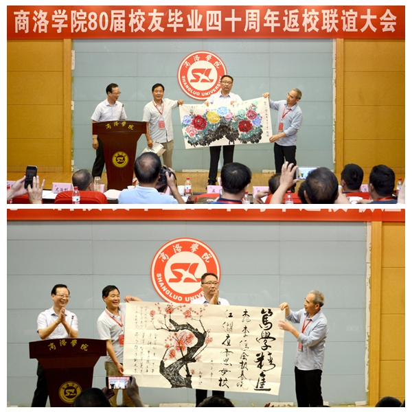 yl23455永利官网80届校友总联络人孟军,在联谊大会上代表全体校友感谢学校对此次活动的重视和支持,并现场赠送《桃李清风报春晓·江湖夜雨思母校》《牡丹图》等书画作品表达对母校的深情厚意。他在发言中表示,忆往昔,岁月峥嵘,母校承载了一代人的青春时光,不管如今身在何方,故土的乡情、母校的恩情、师生的友情都绝不能忘;看今朝,倍加珍惜,80届校友们亲身经历了祖国改革开放40年的发展变化、亲眼目睹了母校翻天覆地的发展壮大,这些来之不易的成果需要我们共同呵护珍惜;讲未来,豪情满怀,如今的祖国屹立于世界之林,扬起了大国的风帆,如今的yl23455永利官网作为陕西省“一流学院”建设单位,已成长为一棵枝繁叶茂的大树,站在新时代的节点展望未来的发展,我们信心满满。衷心祝愿祖国的明天更美好、母校的未来锦绣如花。