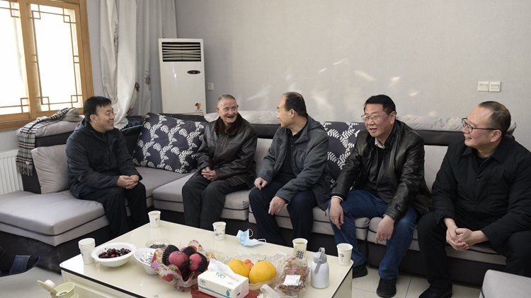 2月10日,商洛市政协主席高健、中共商洛市委直属机关工作委员会书记王浩一行来到永利官网,看望慰问退休老教师王明昌,为老人送上慰问金和新春祝福,并代表市委书记郭永红、市长郑光照向王明昌和家人表示诚挚的问候。校党委副书记彭虎军、副校长郭瑾等一同看望。