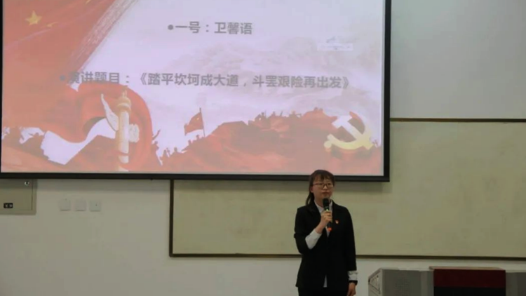 比赛中,9名参赛通过精彩的演讲重温党的光辉历史、歌颂党的丰功伟绩,传递新时代青年对党的忠诚和对未来的无限憧憬,他们富有感染力的演讲深深打动了每一位评委和在场的观众,赢得了阵阵掌声。期间,全体人员起立共唱《我和我的祖国》,用优美的歌声表达对祖国的无限热爱之情,并重温入党誓词,表达一心向党、永远跟党走的坚定决心。