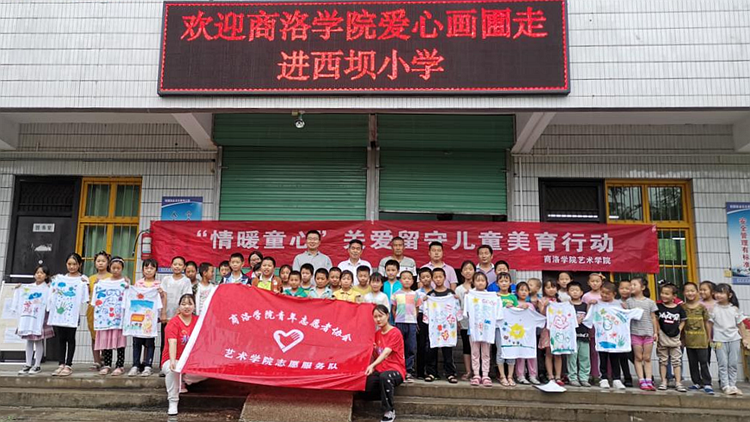 7月2日,永利官网承担的公益项目“乡村爱心画圃”走进了洛南县保安镇西坝小学,项目指导教师、艺术学院教师李斌、王淦卿和李萍及项目成员参加活动。