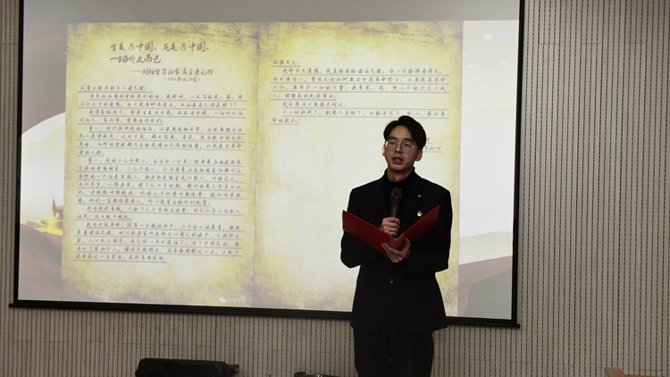 红色家书映照初心,革命故事感人肺腑。由生物学院杨政同学诵读的《红色家书》之《刘伯坚写给家属至亲的信》,感动了在场所有人员。为了深刻感悟革命志士坚定的理想信念,生物学院学生王梓欣等同学以舞台剧《不负使命不负卿》的形式,深情演绎了夏明翰、邓稼先、赵云霄等共产党人坚守初心、缔造伟大事业的红色家风故事。