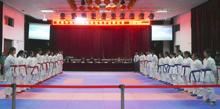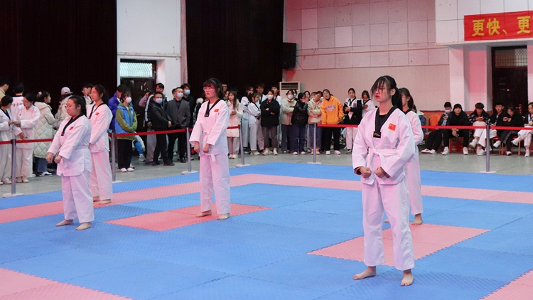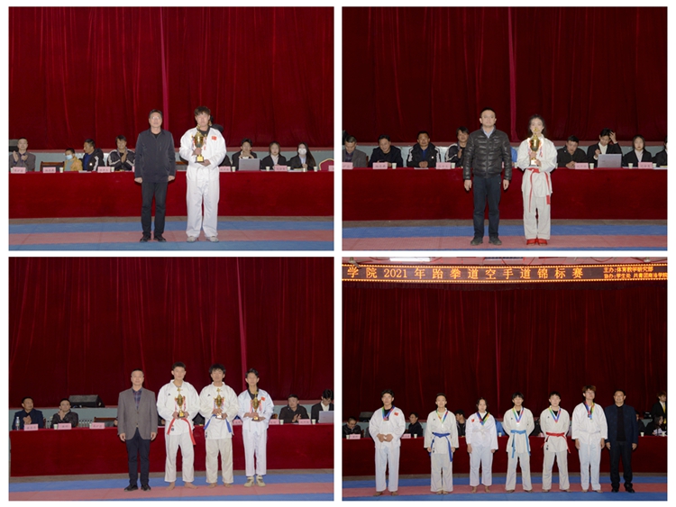 12月1日,由校体育教学研究部主办,学生处、团委协办的2021年跆拳道空手道锦标赛在永利官网大学生活动中心举行。学生处处长杨存典、团委副书记廉明、教务处副处长高扩昌、体育教学研究部副主任黄显忠,及各二级学院师生代表观摩了比赛。