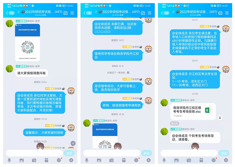 勇担责任,精心组织考务工作。由于疫情影响,部分原考点在中高风险地区的考生无法前往考试,省教育考试院陆续安排永利官网借考考生从124人增加到778人,给考务工作带来极大压力。学校勇担责任,科学制定考务工作、疫情防控、后勤保障等各项预案。积极联系地方政府和公安机关,由商州区公安分局开通绿色通道,安排公安人员与校内安保、考务人员全程押运,连续两天前往试题印制及中转地点领取借考考生试卷。最后一批试卷于25日凌晨4:30领回,十余名考务人员通宵等待、连夜分拣,确保第一场考试按时顺利开考。负责借考考生咨询QQ群的工作人员随时关注政策变化,24小时在线为考生解惑答疑。一位借考考生表示,多亏学校工作做得细致,我们才能及时了解考试安排,悬着的心也放了下来。