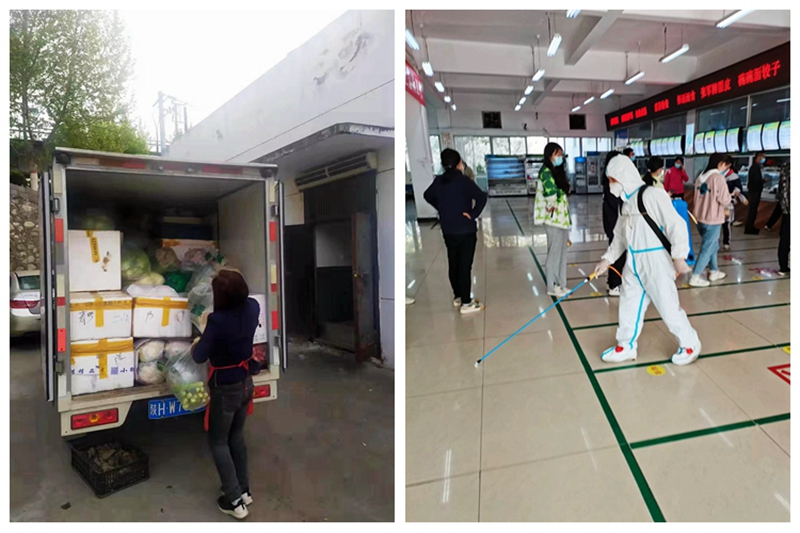 从4月7日下午开始,全体后勤保障人员迅速进入战斗状态,同时开展师生排查流调、防控物资储备、校园卫生消杀、隔离房准备、师生转运隔离等多项工作。因校园紧急封闭管理,留在校内的工作人员比平时少了五分之一。在时间紧、任务重、人手缺的情况下,全体后勤人员舍小家为大家,24小时坚守在工作岗位上,两个校区随处可见后勤人员忙碌的身影。这些天来,后勤人员集体打地铺,在办公室、车内休息,全力确保两校区饮食、水电、校园环境卫生等基本生活保障平稳有序。