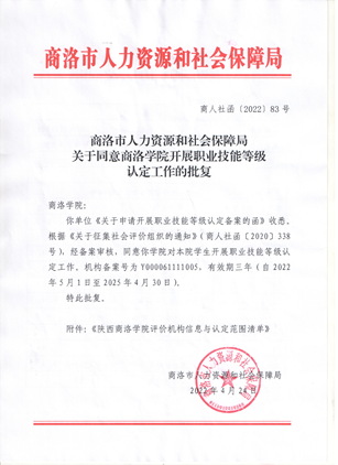 近日,商洛市人社局公布了关于同意yl23455永利官网开展技能等级认定工作的批复,我院获批成为职业技能等级认定社会培训评价组织(机构备案号为Y000061111005)。可对永利官网学生开展电子商务师、连锁经营管理师、互联网营销师、供应链管理师、网络与信息安全管理员、计算机程序员、企业人力资源管理师、电气电子产品环保检查员、保育师、养老护理员、健康照护师等11个职业/工种的职业技能等级认定。