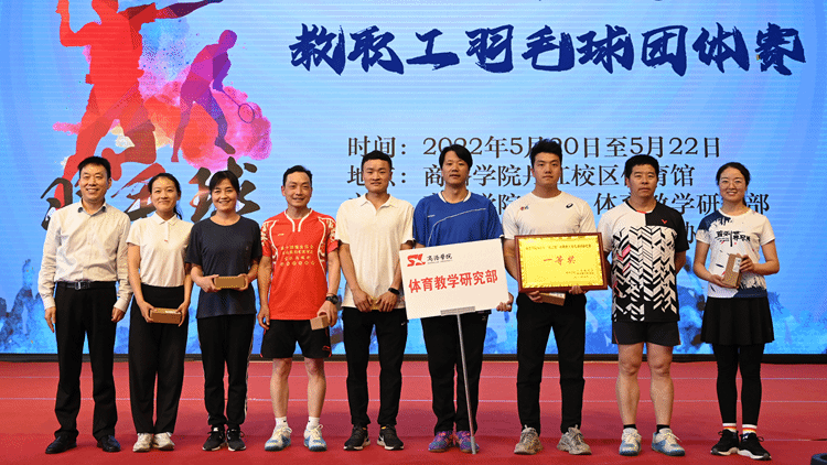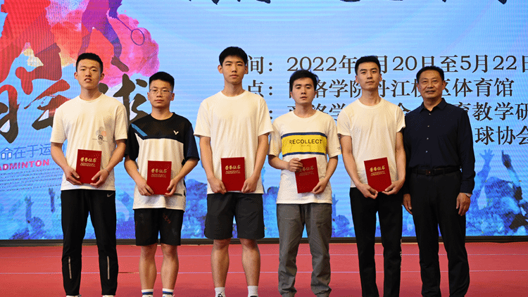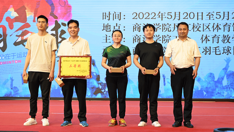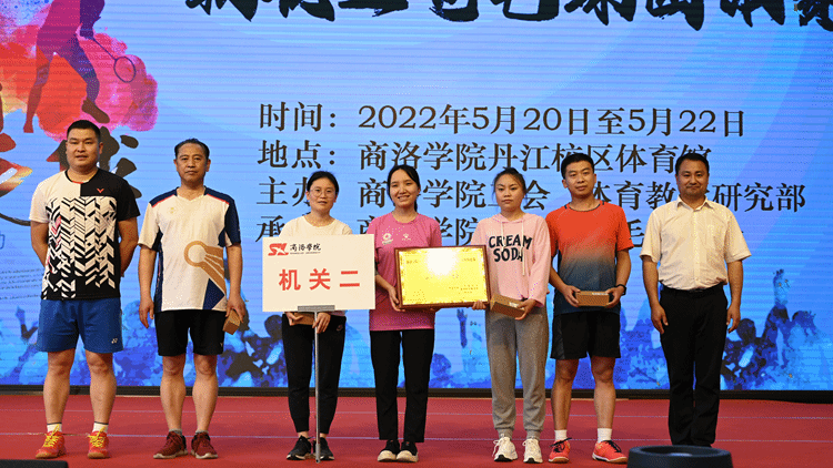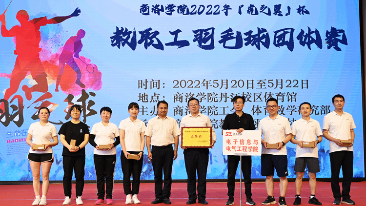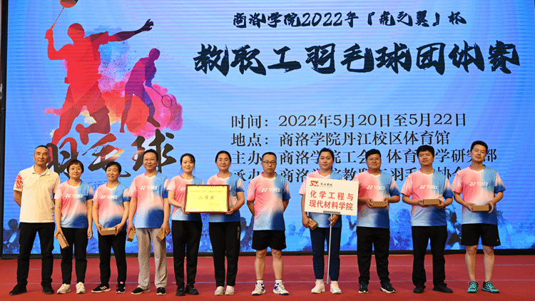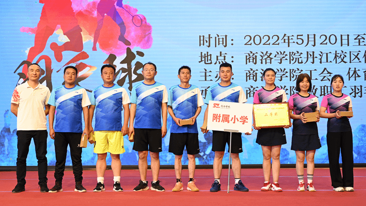 5月20-22日,由校工会、体育教学研究部主办,教职工羽毛球协会承办的2022年“虎之翼”杯教职工羽毛球团体赛在丹江校区体育训练馆举行。校党委副书记、工会主席彭虎军,商洛市“虎之翼”科技有限公司总经理刘珺,yl23455永利官网附属小学副校长白锋军出席颁奖仪式并为获奖代表队颁奖。