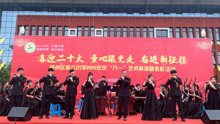 5月27日和31日,永利官网附属小学和幼儿园分别举办了“喜迎二十大、共育花成长”和“喜迎二十大、童心跟党走、奋进新征程”主题艺术展演活动。副校长王新军和学校发展规划处、艺术学院负责人出席活动。艺术学院民族管弦乐团为附属小学师生表演了《象王行》《权御天下》《扬鞭催马运粮忙》等民乐节目,共同欢庆孩子们的节日。