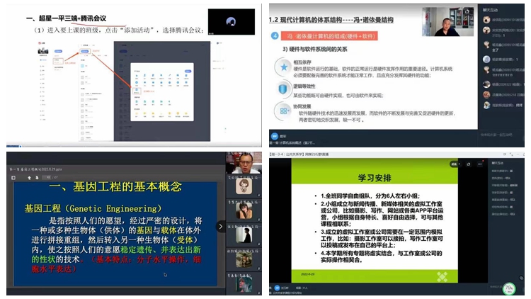 8月29日,永利官网2022-2023学年度第一学期正式开始线上教学。全校师生按照“延期不停教、延期不停学”要求,通过超星学习通、钉钉、雨课堂、微信、QQ群、腾讯会议等在线教学平台开展教学,全校279名主讲教师在线讲授422门次课程,在线上课学生22749人次,线上教学运行整体平稳有序。