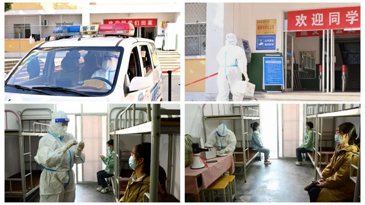 下午,演练以一名返校学生自测体温高于37.3℃为背景,模拟学校立即启动疫情防控应急处置预案,实施“疑似”病例应急处置转运和密切接触者应急处置管控等对应紧急防控措施。各工作组配合到位、紧张有序、快速有效,各环节有条不紊、处置得到。通过现场情景模拟结合旁白解说的方式,完整展现了“发现报告、现场复查、处置转运、环境消杀”等场景,依次完成对发热病例采取隔离防护,联系定点医院进行专车转运,对密接人员和场地进行临时管控,完成所在宿舍整栋楼及隔离房的全面消杀,同步有效在全校范围内开展流调工作等应急处置内容。